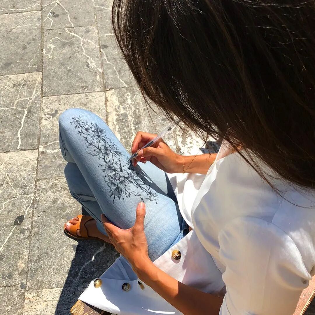 我们读书那会上课走神的时候 会经常拿笔在书上写写画画 而她夏天更多的时候穿着腿裤、裙子或者破洞牛仔裤 走神的时候就喜欢拿笔在腿上画画