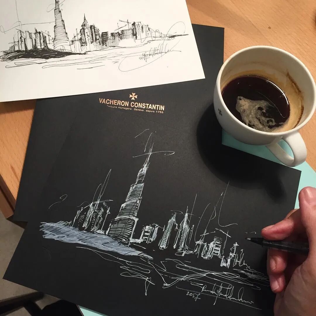 她绘画初期的时候 每天在大腿上练习一幅画 这样练习下来 后面作品就越来越好了