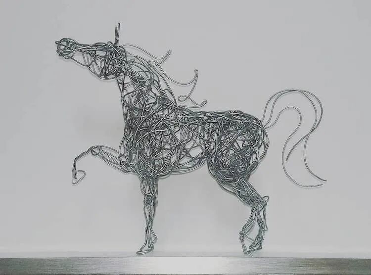 接下来,我们就一起看一下这位自学成才的雕塑艺术家,创作的精彩钢丝马雕塑吧。