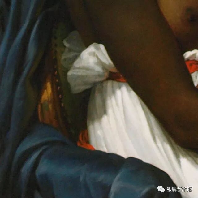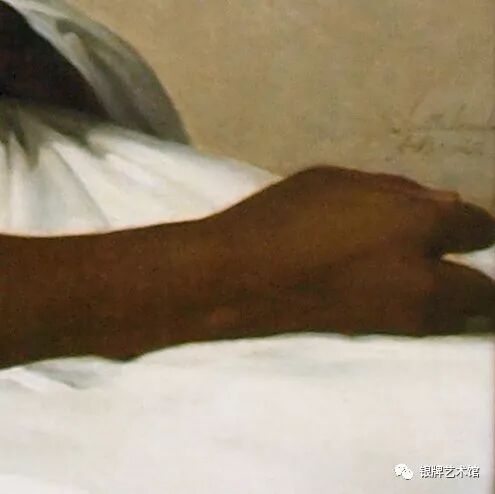 黑人女性的形象健美、丰满,其棕色的皮肤与白色的头巾、裙子形成鲜明的对比,束腰的橙红色腰带与古典坐椅上绿色的丝绒椅罩在画面上形成鲜明的对比,典雅的色彩在淡黄色的背景上异常赏心悦目。