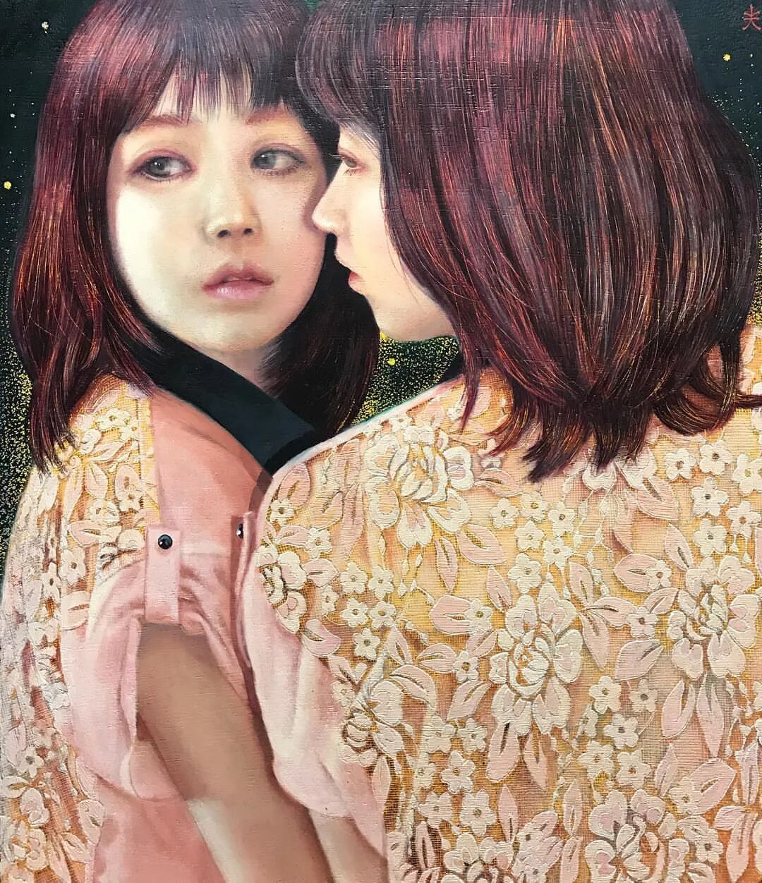 她的作品概念基于荣格的 "夜航之旅 "的心理学概念,通过镜子等主题,她通过描绘 "假象 "和 "现实"、"光明 "和 "黑暗"、"早晨 "和 "黑夜 "来探索 "生命 "和 "死亡 "问题。