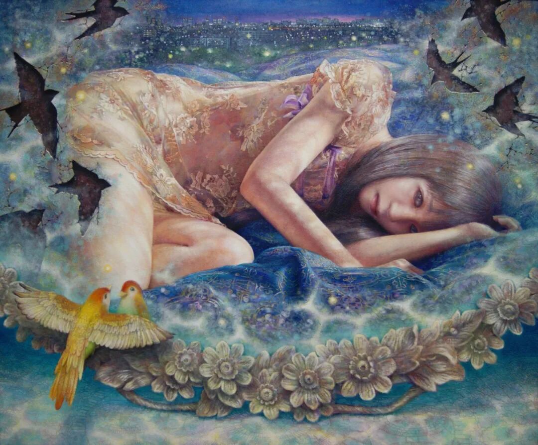 /女画家市川光鶴,融合心理学的绘画创作。