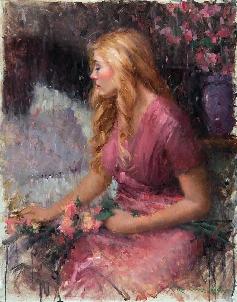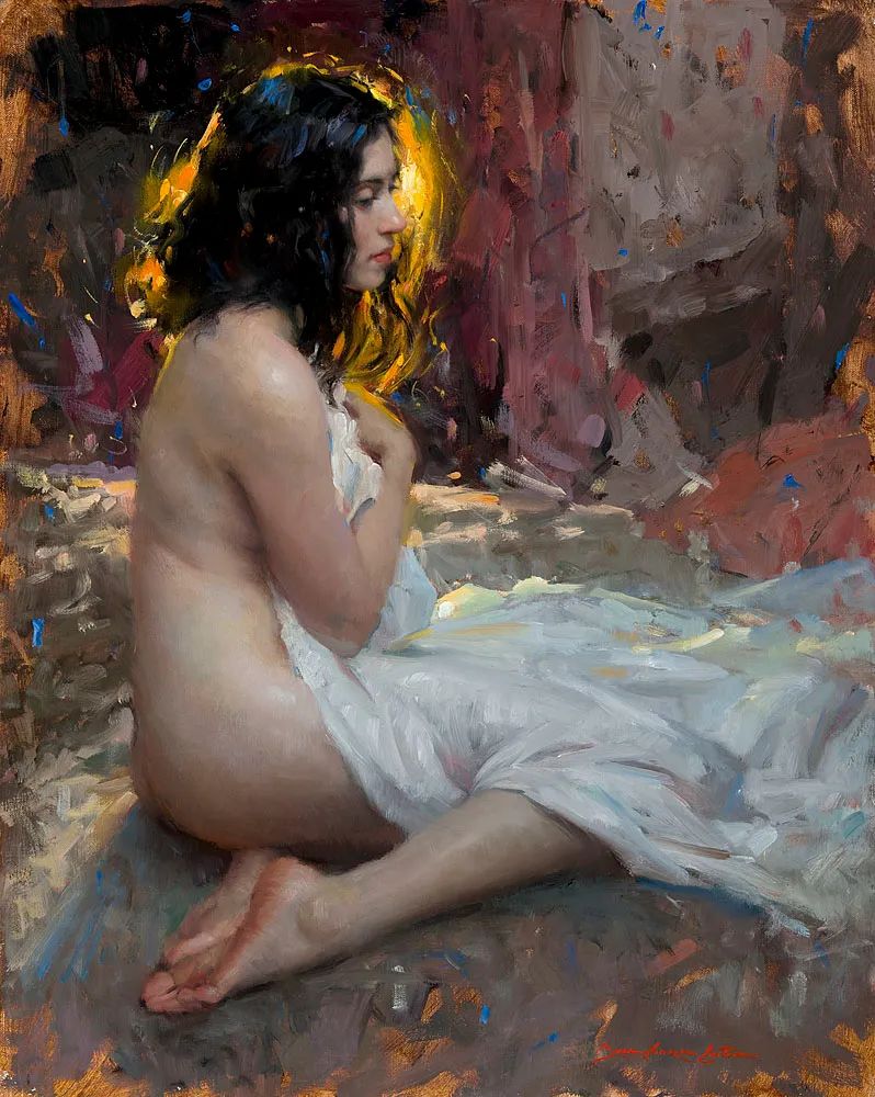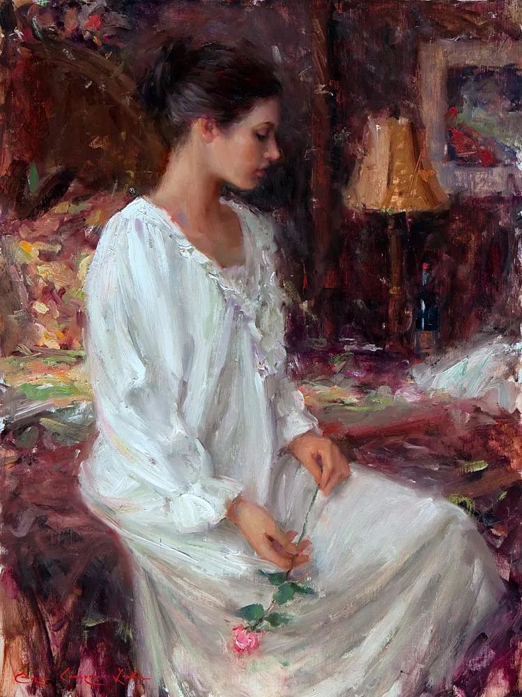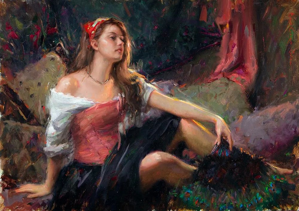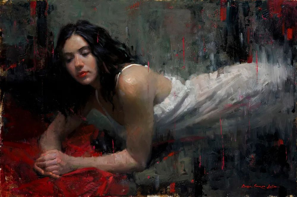 艺术家 Daniel 对女性形象,尤其是穿衣形象的把握是非常出色的。他从古老的浪漫主义和象征主义传统中汲取灵感。他绝对奢华的表面、色彩和灯光与他的表现主义笔触、光影的运用和造型相协调。