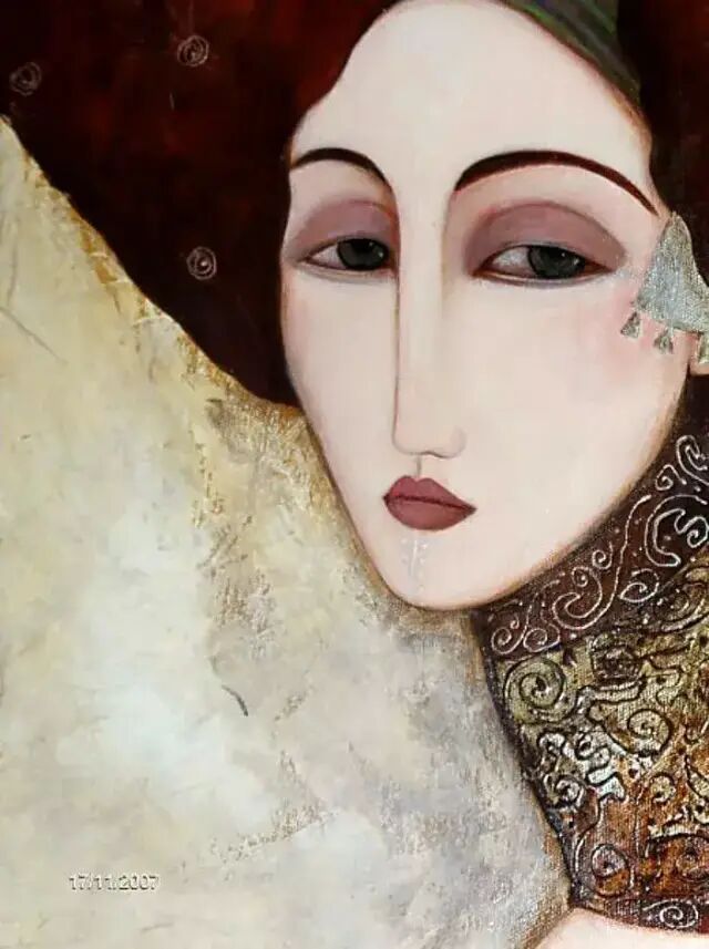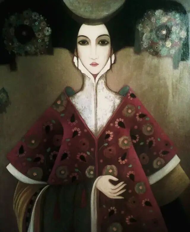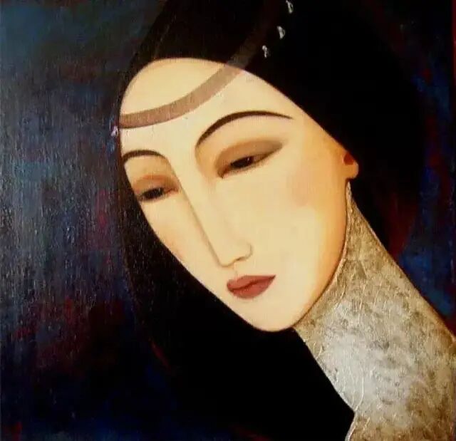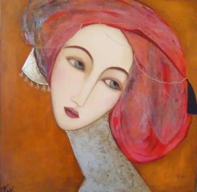 所有这一切都留下了印记,无论是建筑、音乐还是生活方式。在我的作品中,我试图传达某种浪漫主义的灵感,灵感来自于阿拉伯和波斯的诗歌,我从过去的微缩模型的服装和发型中得到灵感,我发现这些服装和发型充满了微妙和克制,我也被部落珠宝的象征意义所吸引,并在我的绘画中重新创造了这种风格,比如缅甸和非洲的长颈鹿领妇女,她们既是美丽的象征,又是被迫的残酷。