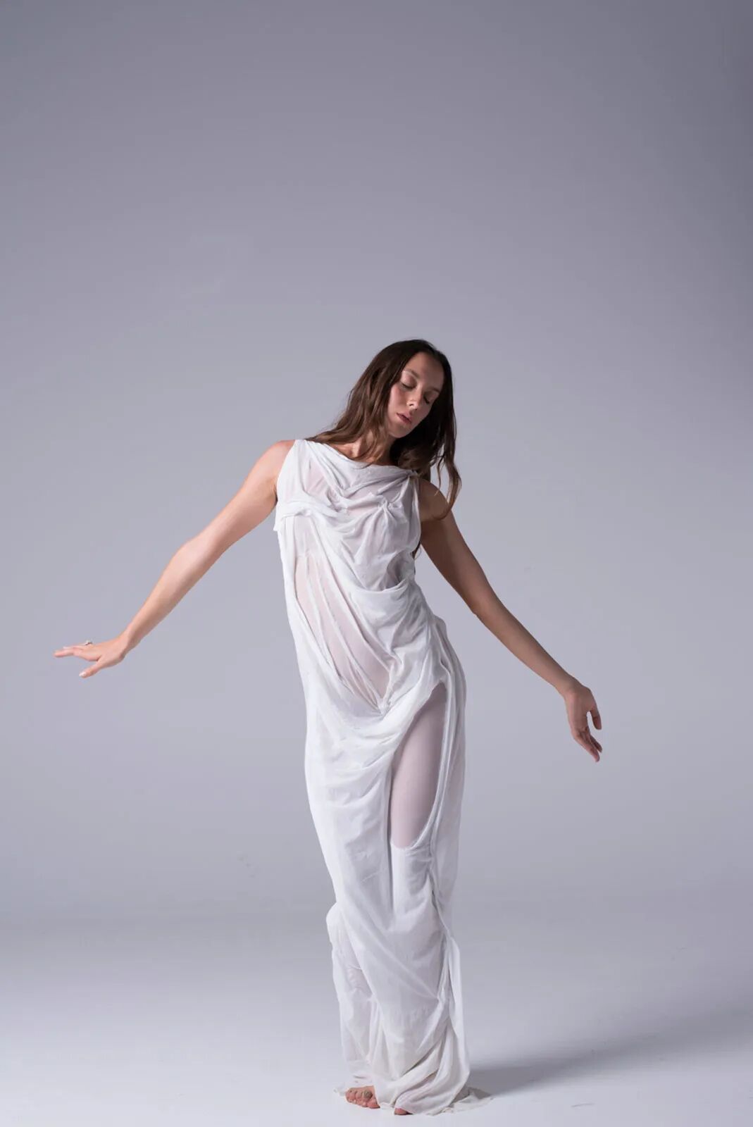Di Petsa是希腊女装品牌Dimitra Petsa的设计师。受到她家乡希腊周围的海洋的启发,以及女性性欲的启发,开发了看起来像滴水一样,而且是透明的物质材料。