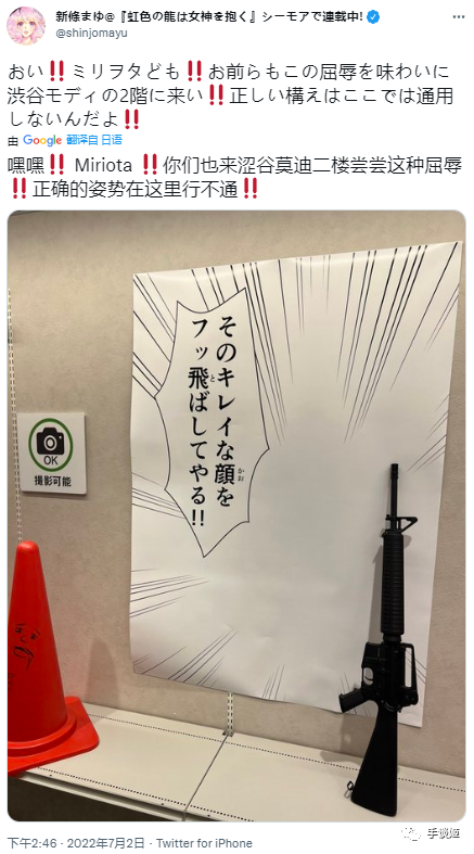 当年,被指出这个离谱错误后,新条真由还专门买了一个模型步枪,表示“太重了只能扛着”,自黑能力MAX。