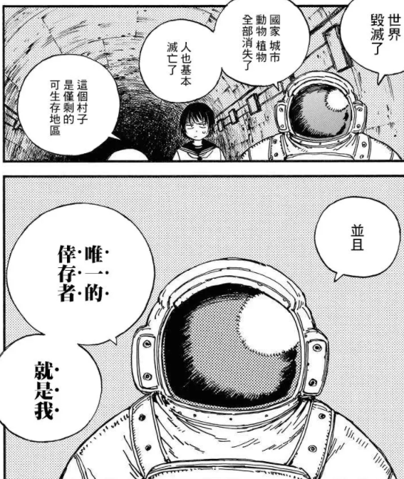 不过,作者倒也没有硬塞给我们一个灰暗的结局,虽然世界已经毁灭,但作者仍在结尾表达了希望。