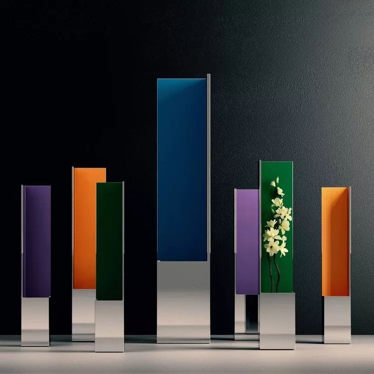 挤压的铝材构成了这个精致的花瓶, 内部涂有手工抛光饰面,每个花瓶都为花朵提供了一个独特的展示舞台。