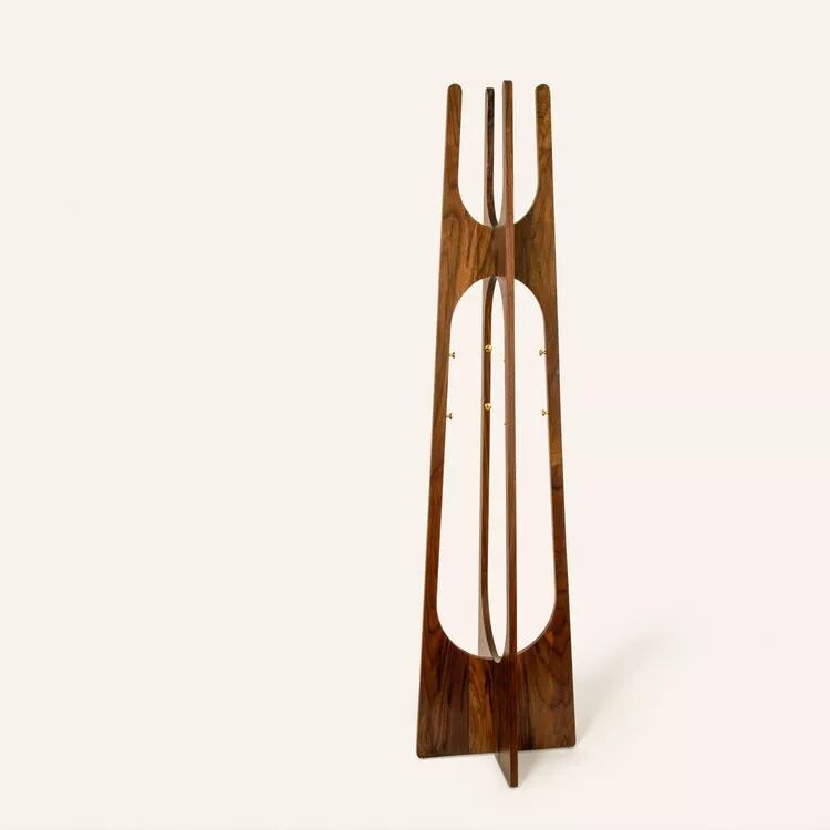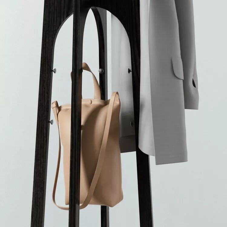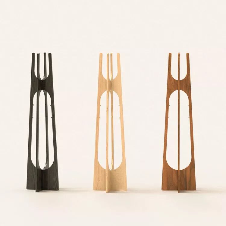 Sentinel 衣架线条简单,宛如一件雕塑作品。上方可挂衣物,中段可挂包包等其他小物件,还有不同的木材可供选择。