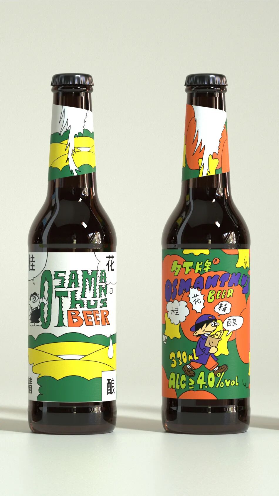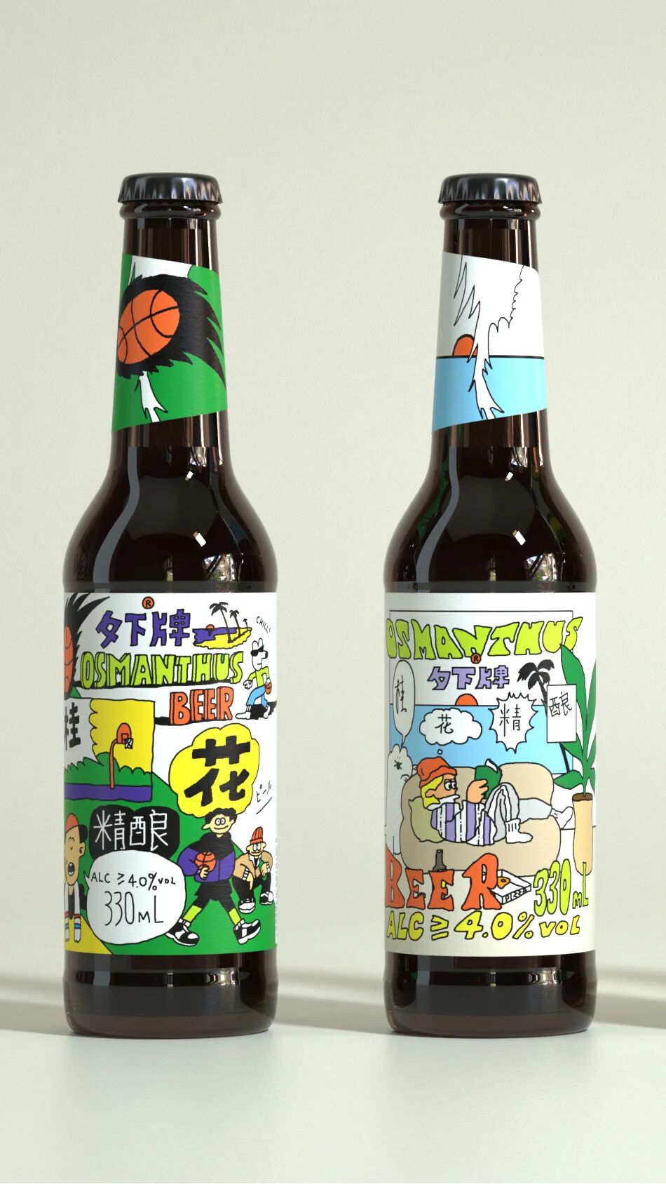 桂花酒是属于秋天的饮料。秋天的惬意舒适除了是满月与落叶,设计团队还从中古童话故事书中获得了灵感,看似与秋天毫无关联的幻想,与某种冷冷的幽默趣味和轻快的惬意感。正是我们对「惬意好秋」的拓展,并试图发现其中的间接诗意。