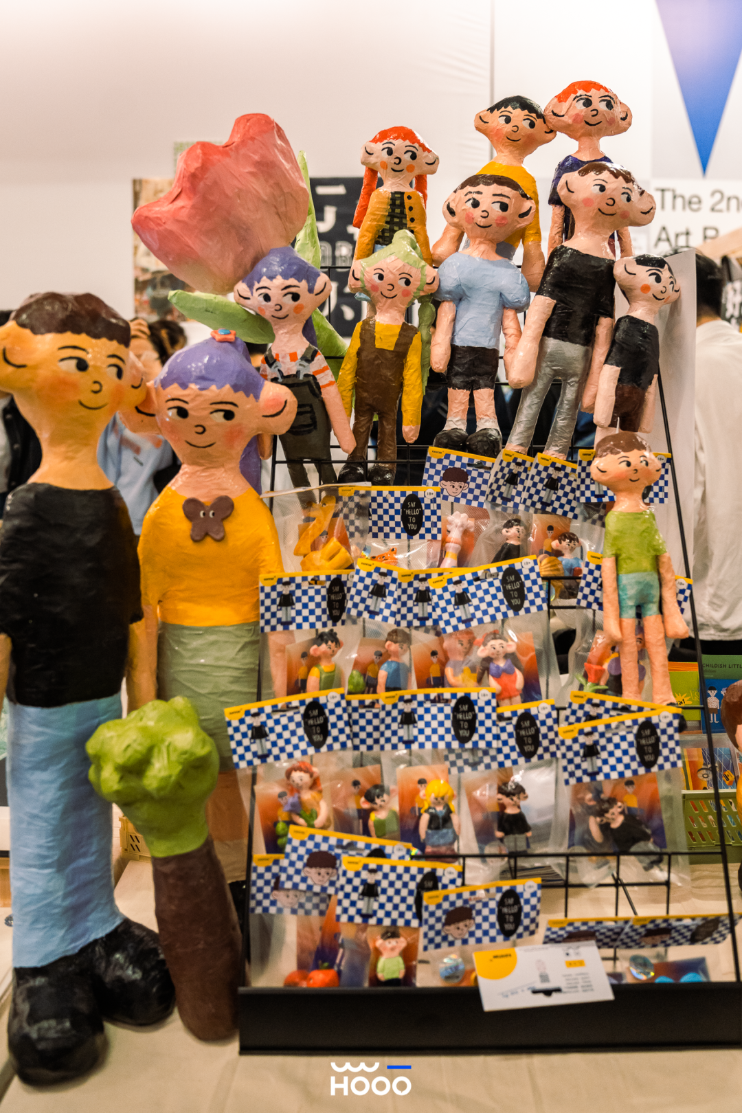 去年他带着主题画报来过,纸塑人和超轻纸黏土小孩是今年的新作品,在展台上吸引了不少人来咨询。