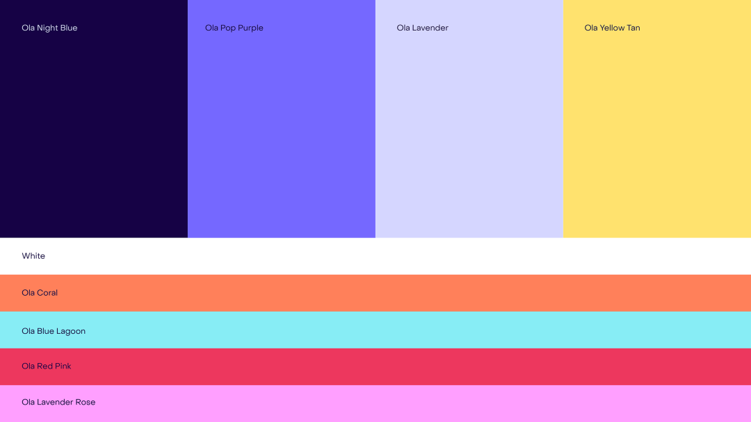 品牌符号结合了一个灵感来自于波浪运动的图形形状,以字母“O”为中心表示进步的理念和社区的概念。是一种视觉上的表现力,反映了 Ola 的品牌战略,也是对Ola品牌结构的一种补充。