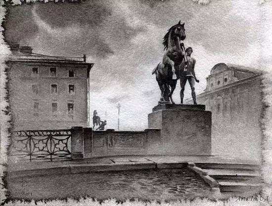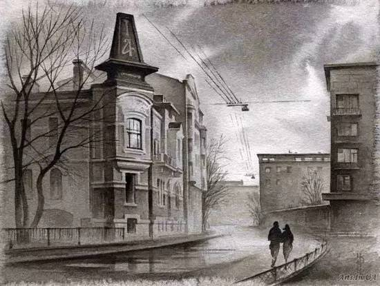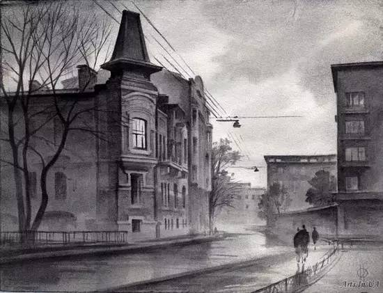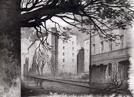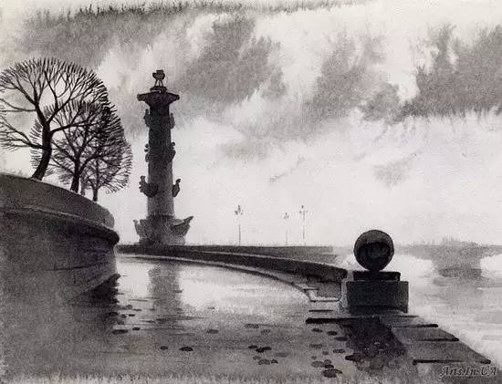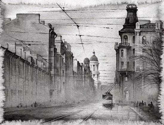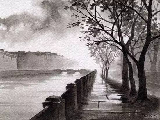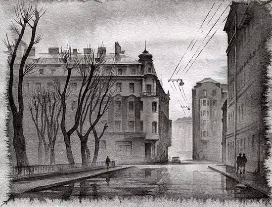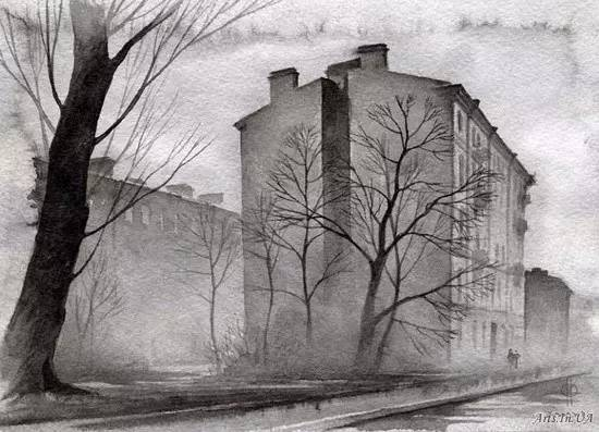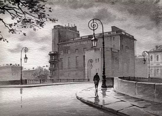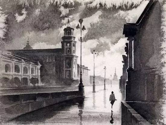 在国画中,墨分五色:焦、浓、重、淡、清。在水彩画中,单色水彩也可以很美妙。Oleg Eldeukov,俄罗斯画家/建筑师,他的一组单色水彩,画面深处仿佛有着浓浓雾气,越看越有味道。