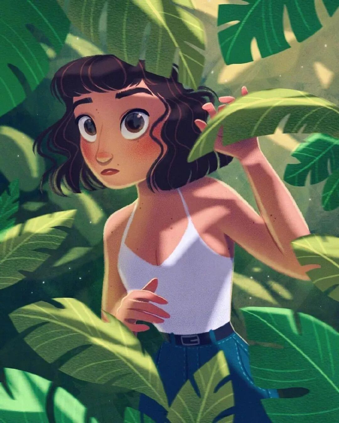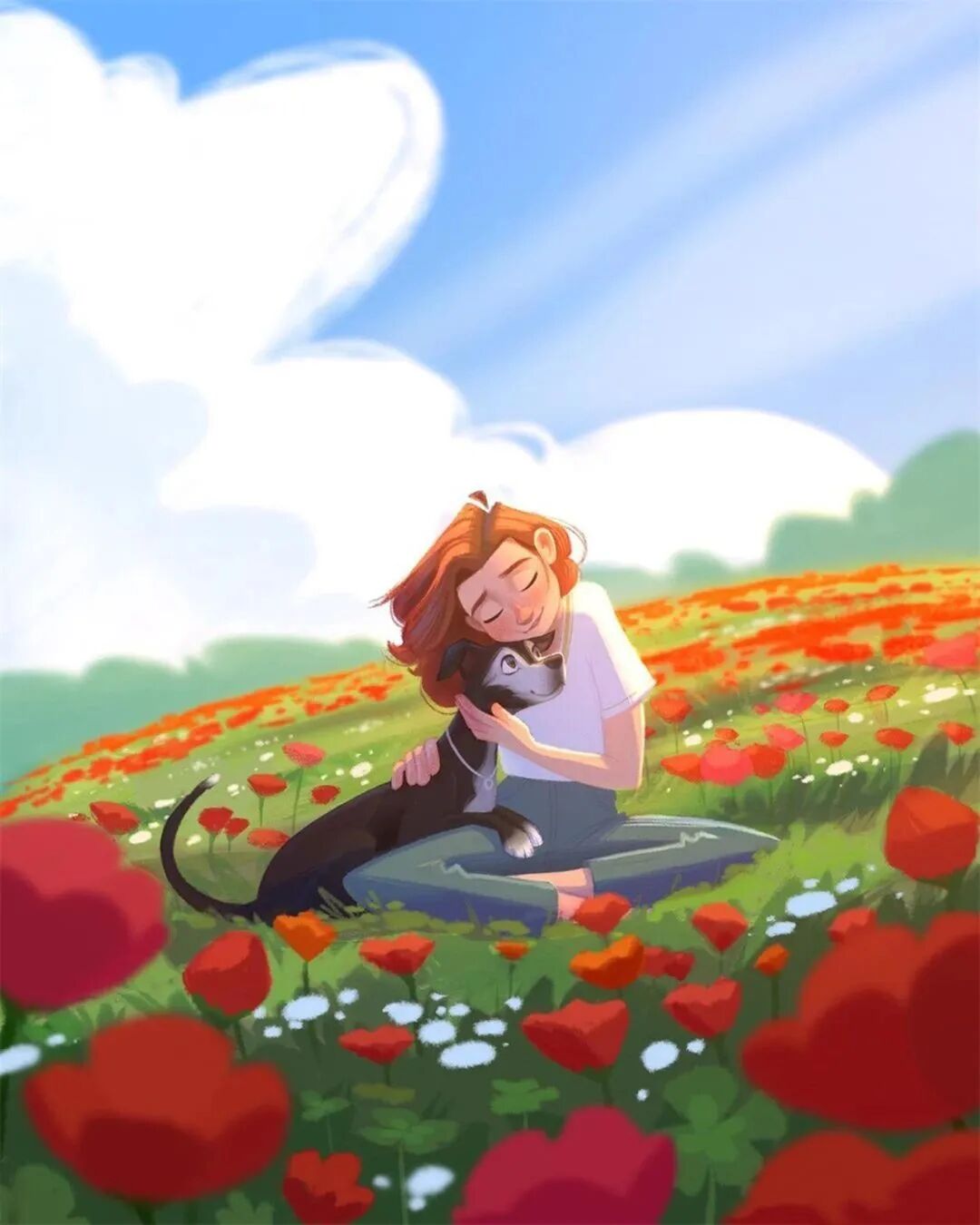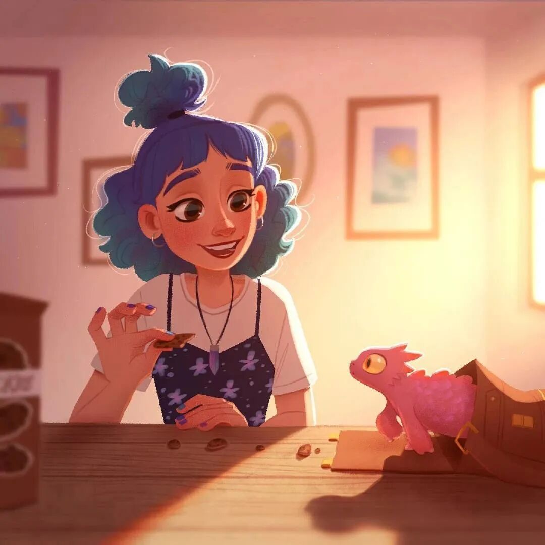 插画师Aveline Stokart笔下的这一组人物场景插画,画面的整体感干净且利落。她对色彩和光影的把控造诣极高,用光影点缀画面,营造出氛围感,让整个画面都温暖治愈。