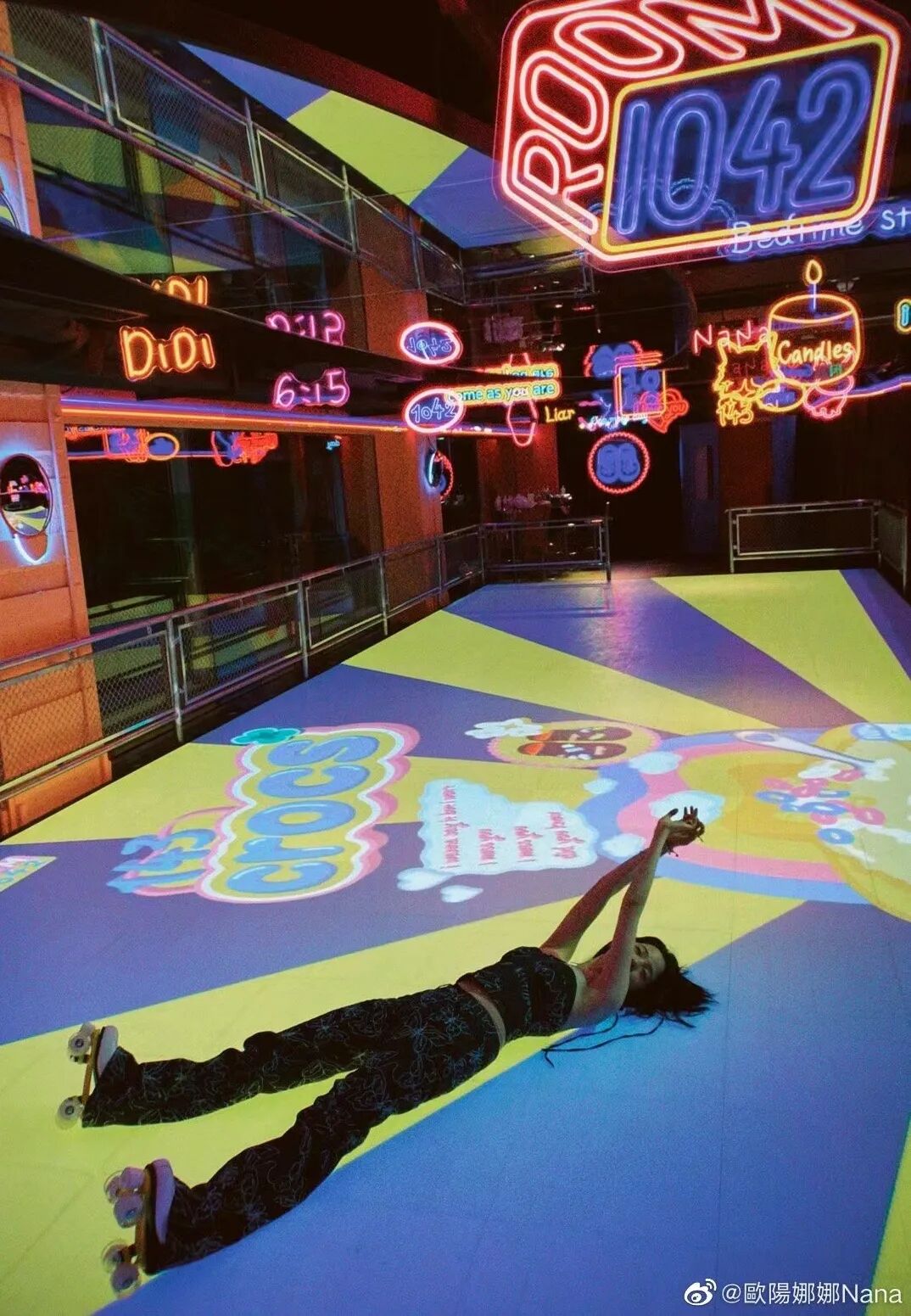 其次被提到最多的是143号房床边的衣柜,它就像《纳尼亚传奇》中神秘魔衣柜一样,打开柜门可以穿行去到一座五彩斑斓的旱冰场,也是欧阳娜娜梦想房间的秘密基地。
