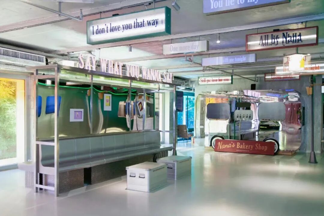 4楼是欧阳娜娜个人私藏的黑胶唱片和图书,另外有特调鸡尾酒。与真正的酒店一样,本次展览的各个楼层都有餐饮区域,当观众在“酒店”参观展览时,可以停下来喝杯咖啡,吃一个甜甜圈,甚至和三五好友小酌一杯,是一个真正的多元化商业实体。后续还会不定期举办电影之夜、音乐露营等活动。