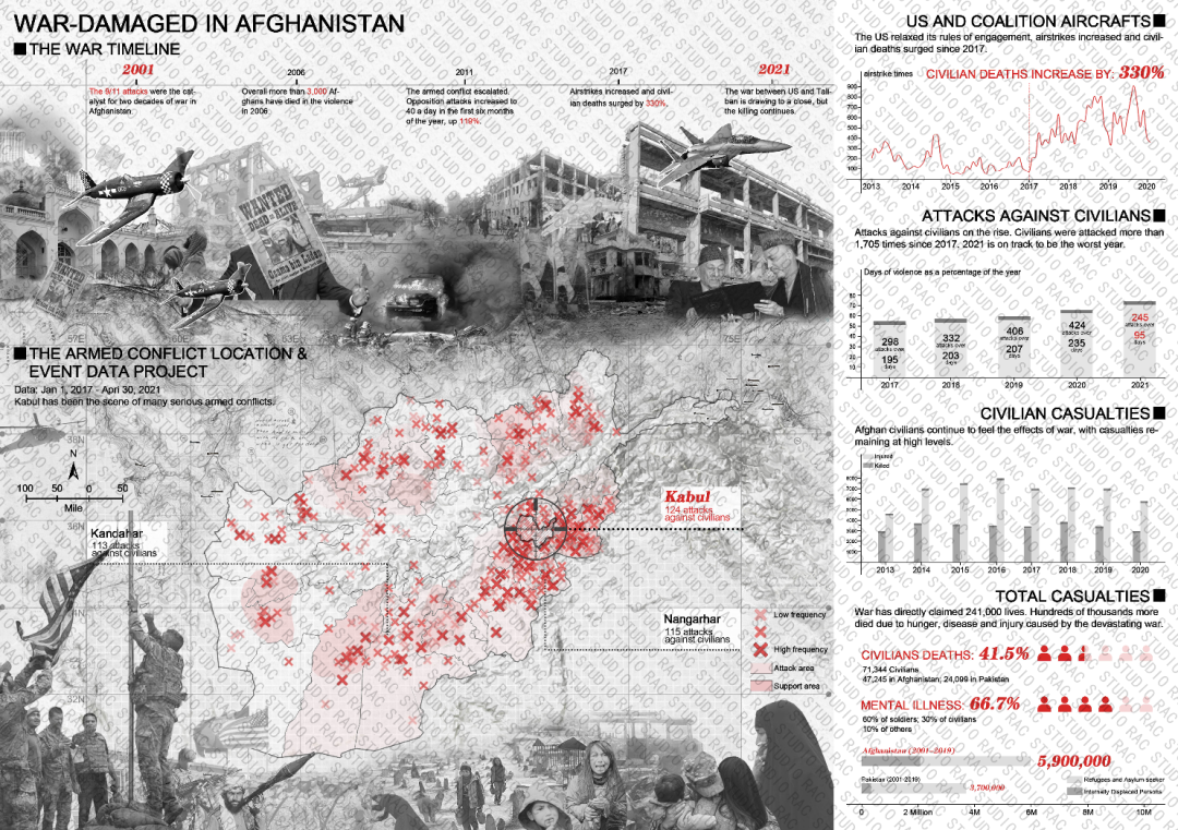 阿富汗10年战争于2021年结束。当人们在网路上谈论这场战争的得失时,阿富汗人民的苦难仍在继续。受损的家园需要重建,受损的精神世界也需要疗愈。该基地坐落于阿富汗首都Kabul的Zarnegar公园和一座著名的清真寺旁边的空地上,项目的设计语言主要提取自清真寺的马蹄形拱门。为了最大化神圣的体验,构筑物的尺度被放大;下沉的梯田减轻了传统景观的庄严,为祈祷和冥想提供了更多的选择。项目中谨慎地使用光线、声音和尺度来帮助游客找到自己的舒适感和归属感。通过在景观中产生一种共鸣,实现虚拟与现实空间的转化与融合。