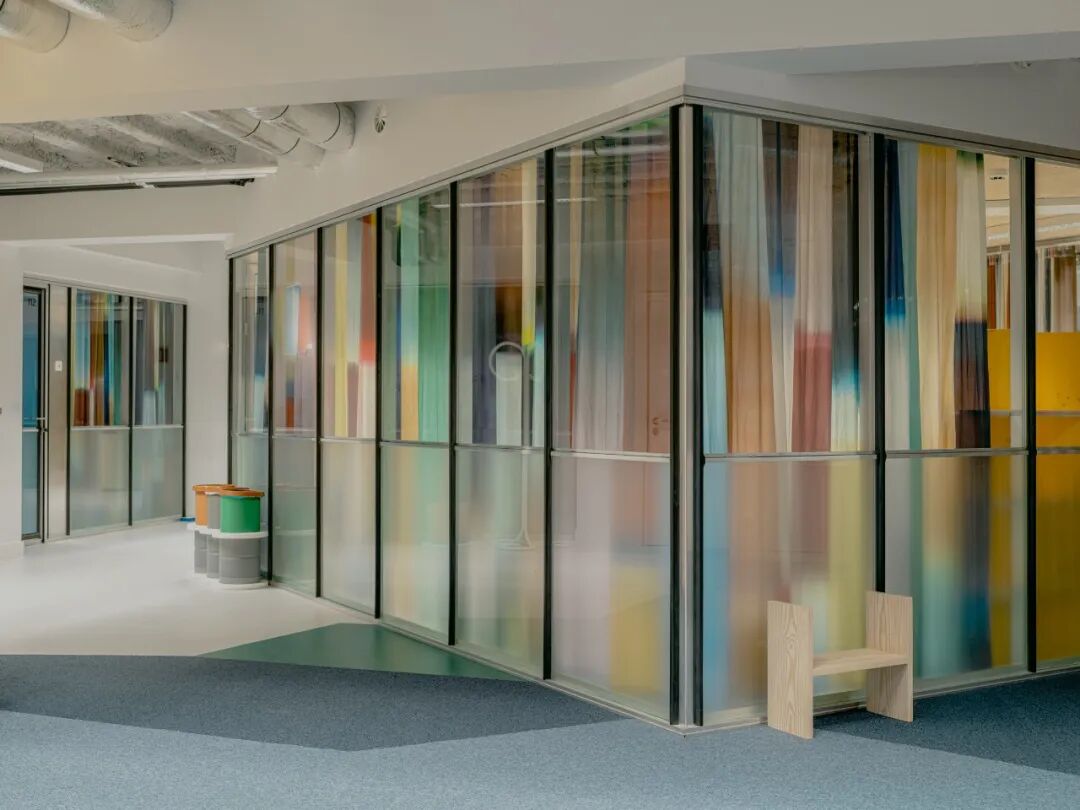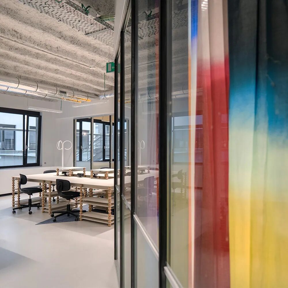 在他们的共同协作与努力之下,这个总面积将近 6000㎡ 的共享办公空间被赋予了色彩与形体的双重艺术气质。