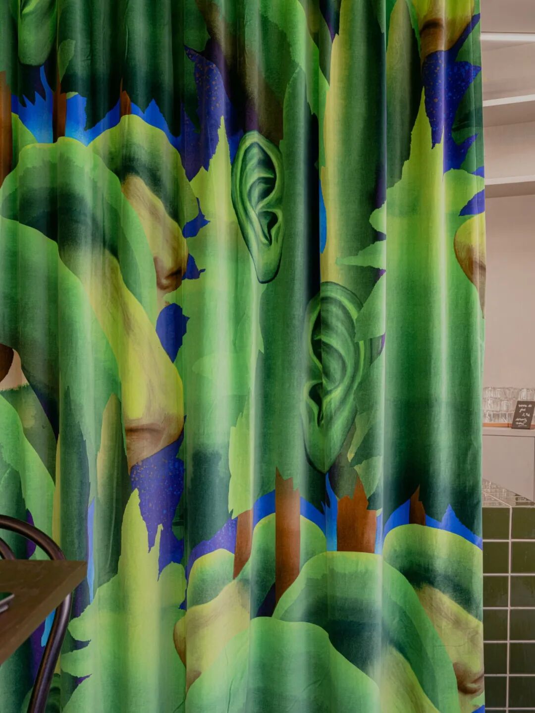 另外还能看到由 Christopher Hefti 设计的绿色窗帘,灵感来自瑞士的森林。