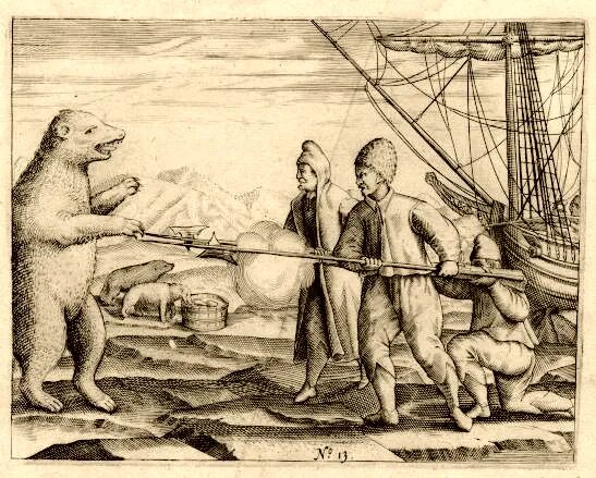 △1594 年,荷兰制图师威廉·巴伦茨 率领的探险团队第一次遇到了北极熊。图/Wikipedia