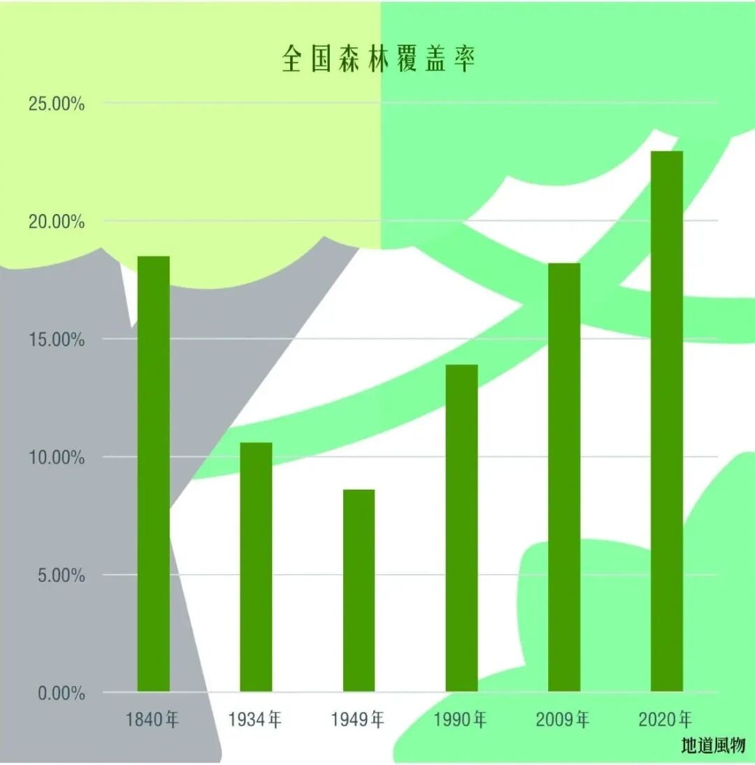 △自从19世纪外国探险家频频来到中国后,中国森林覆盖率几乎腰斩,直到新中国成立才有所恢复。制图/地道风物
