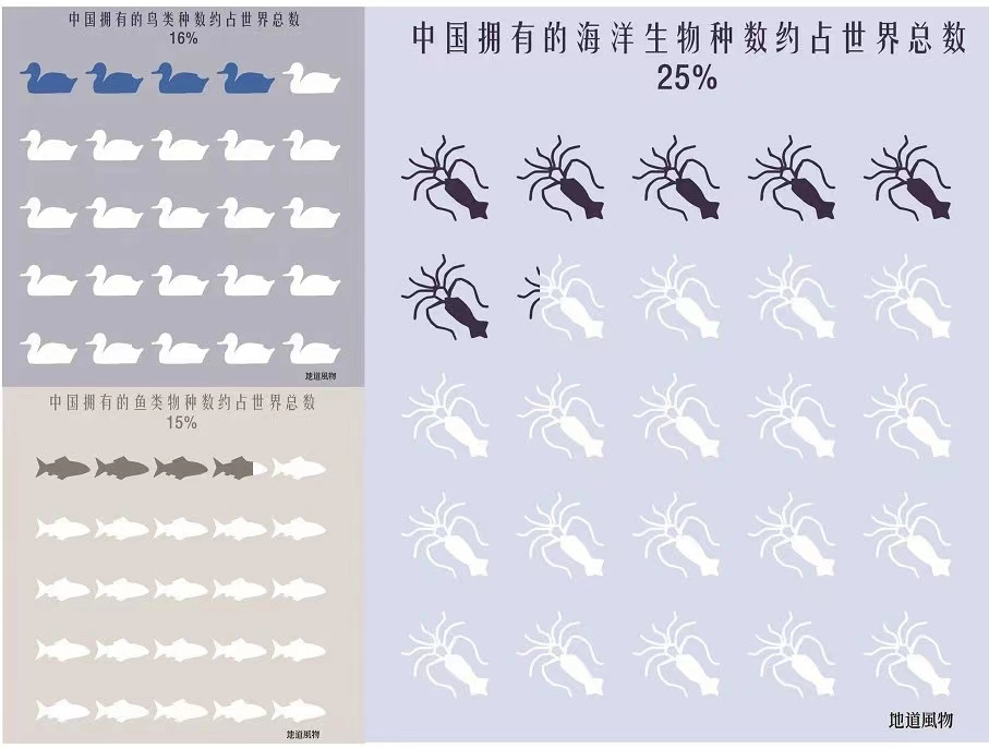 △中国地大物博,是世界上生物多样性资源最丰富的国家之一。制图/地道风物