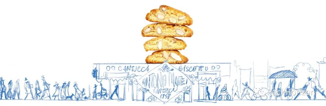 1858 年,Antonio Mattei在普拉托的 Via Ricasoli 22号开设了他的饼干工厂并转售, 开始烘烤一种干杏仁饼干,这是他开发的配方, 后来成为传统的普拉托杏仁饼干。这种饼干立即不仅跨越了大公国的边界,而且跨越了未来的意大利。自1858年以来,一直如此,生产仍在同一实验室进行。在普拉托历史中心的十三世纪家族建筑中。以同样的爱和尊重特殊质量的原材料和工匠方法。