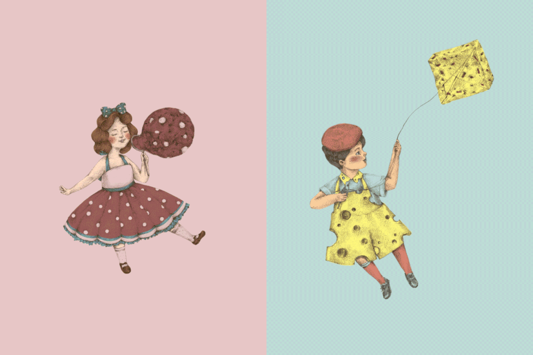 该品牌围绕 "光 "或 "空气 "主题,这是 "气球 "和 "拂尘 "共同的主题。气球含有空气,而打蛋器是一种用于将空气纳入混合物的烹饪工具。光 "的主题在插图人物中也很突出,每个人都代表着不同的口味和美味佳肴。
