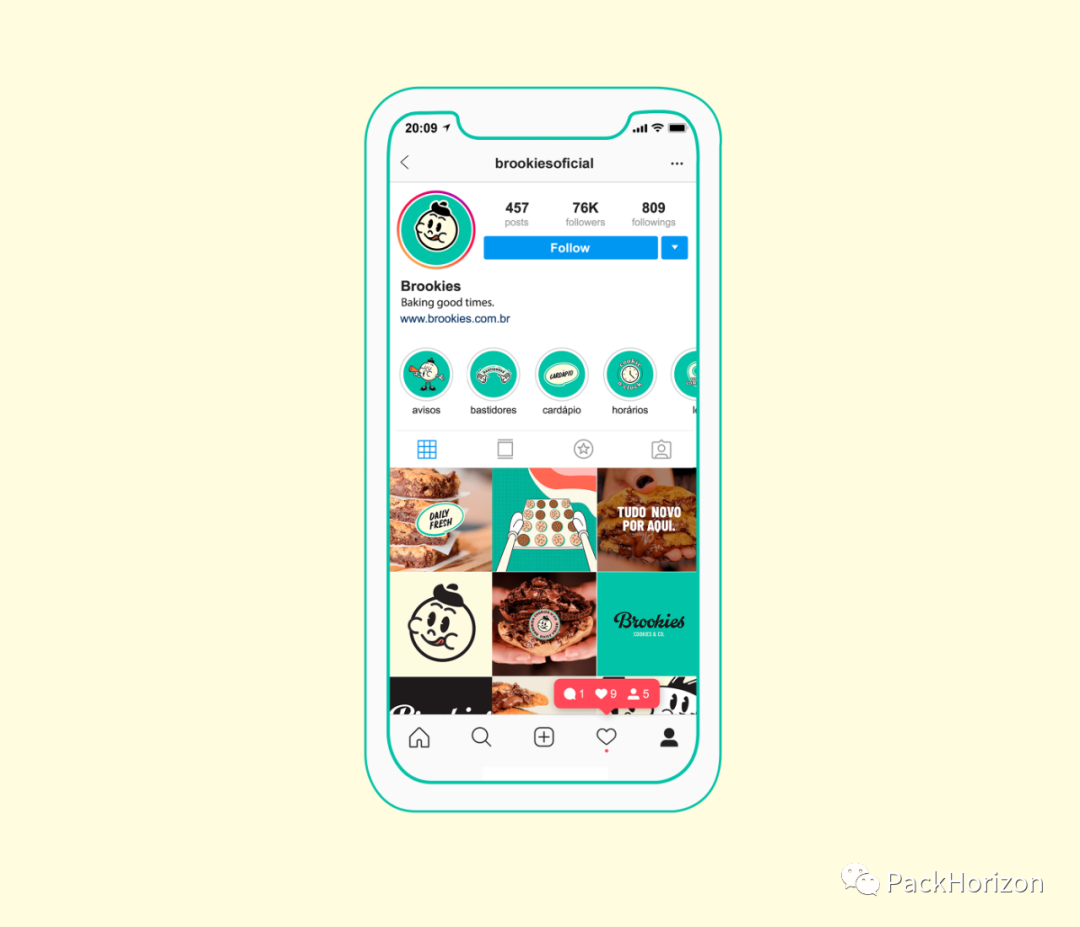 Brookies是一个位于巴西南里奥格兰德州阿雷格里港的专业手工制造布朗尼蛋糕、饼干和咖啡的品牌,其口号是通过糖果给人们带来快乐。面对品牌的新时刻,简报要求一个更清晰、更坚实的品牌定位,该品牌正在向新的商业点和未来的特许经营项目扩展。通过定位策略,我们确定了在已经狂热的Brookies顾客心目中要探索的领域和差异。美好而温暖的怀旧情结。在这个概念的指导下,一个充满活力的色调和 "烘烤美好时光 "的标语,我们创造了一个真实的、全球化的、城市的、有趣的平台,其新符号带来了一丝酸性幽默,其灵感来自于50年代的卡通片,通过他们夸张和浮夸的表情探索了一种狡猾和恶意的氛围。一个像城里最好的饼干一样美味的项目。