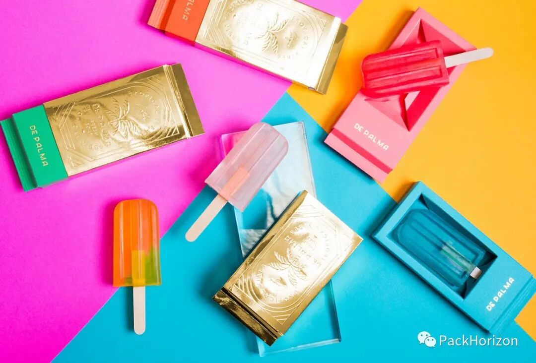 这个包装包含了一个由肥皂制成的冰棒,通过装饰艺术风格的点缀和优质的表面处理,传达了这种热带清新气息。