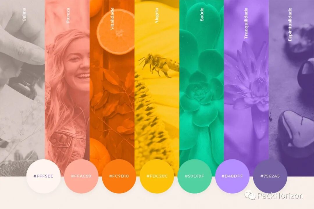 调色板需要充满活力和色彩,以区别于这个市场上占主导地位的柔和色调。每种颜色都是根据每一种颜色所承载/唤醒的意义和感觉来选择的。