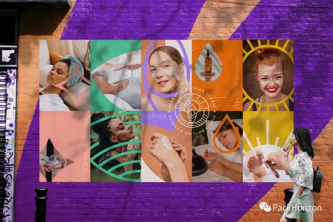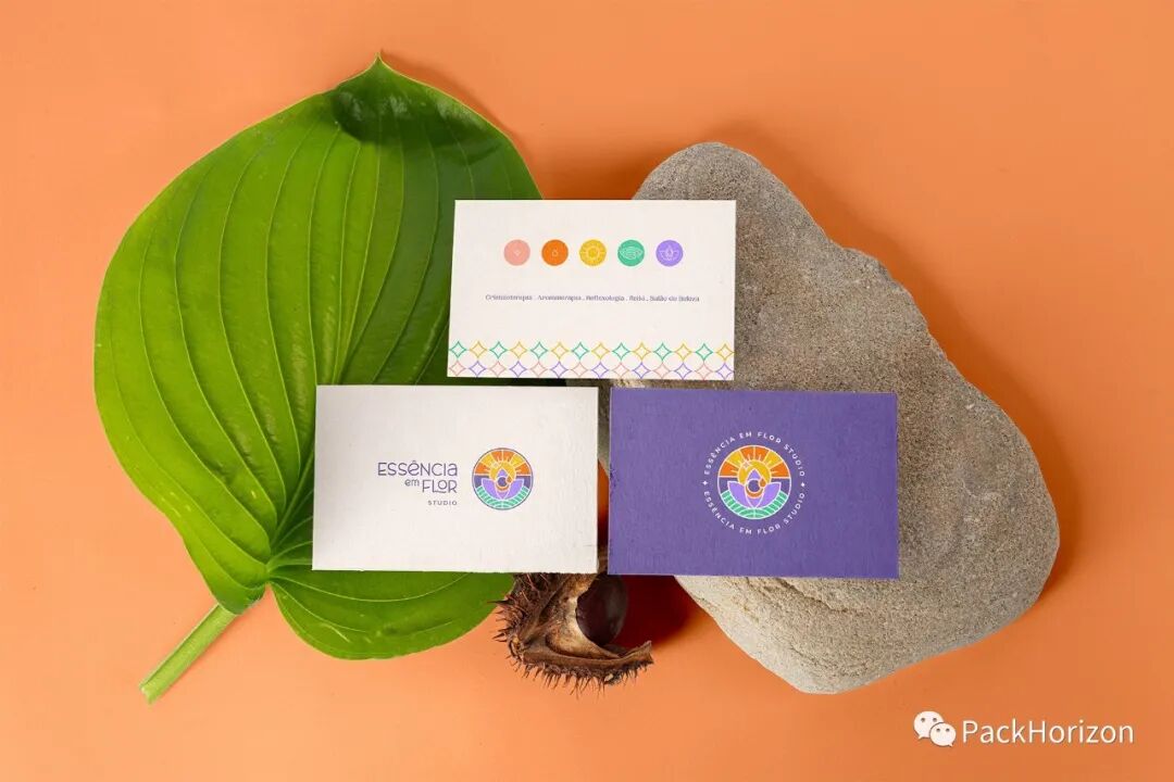 网格的特点是圆形的线条,元素在这里开始或被引导到一个中心点。Essencia em Flor工作室在其物理空间中有五个不同的部分。它们中的每一个都在网格中获得了自己的图形表现(水晶、水滴、太阳、莲花、田野),创造了一个以和谐方式对话的景观。这五个元素在主要符号中一起工作,但在视觉识别的发展中单独出现。