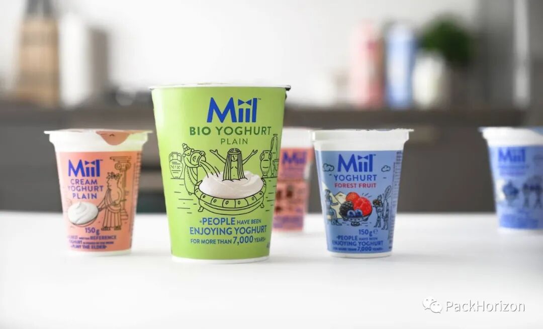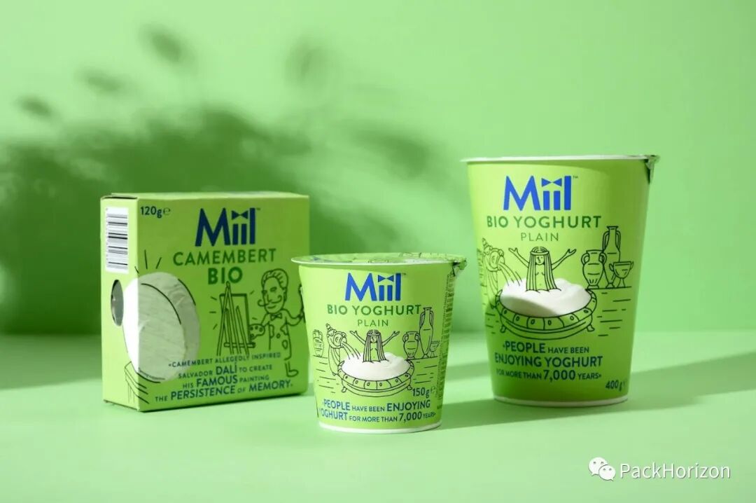 该系列的调色板由柔和但非常清新的色调组成。它使产品系列脱颖而出(特别是在你的冰箱里),但也有助于浏览它。绿色代表有机,蓝色代表核心,粉红色代表风味……这不是该类别最典型的调色板,而是另一种打乱的方式,并获得了自己的品牌声音。