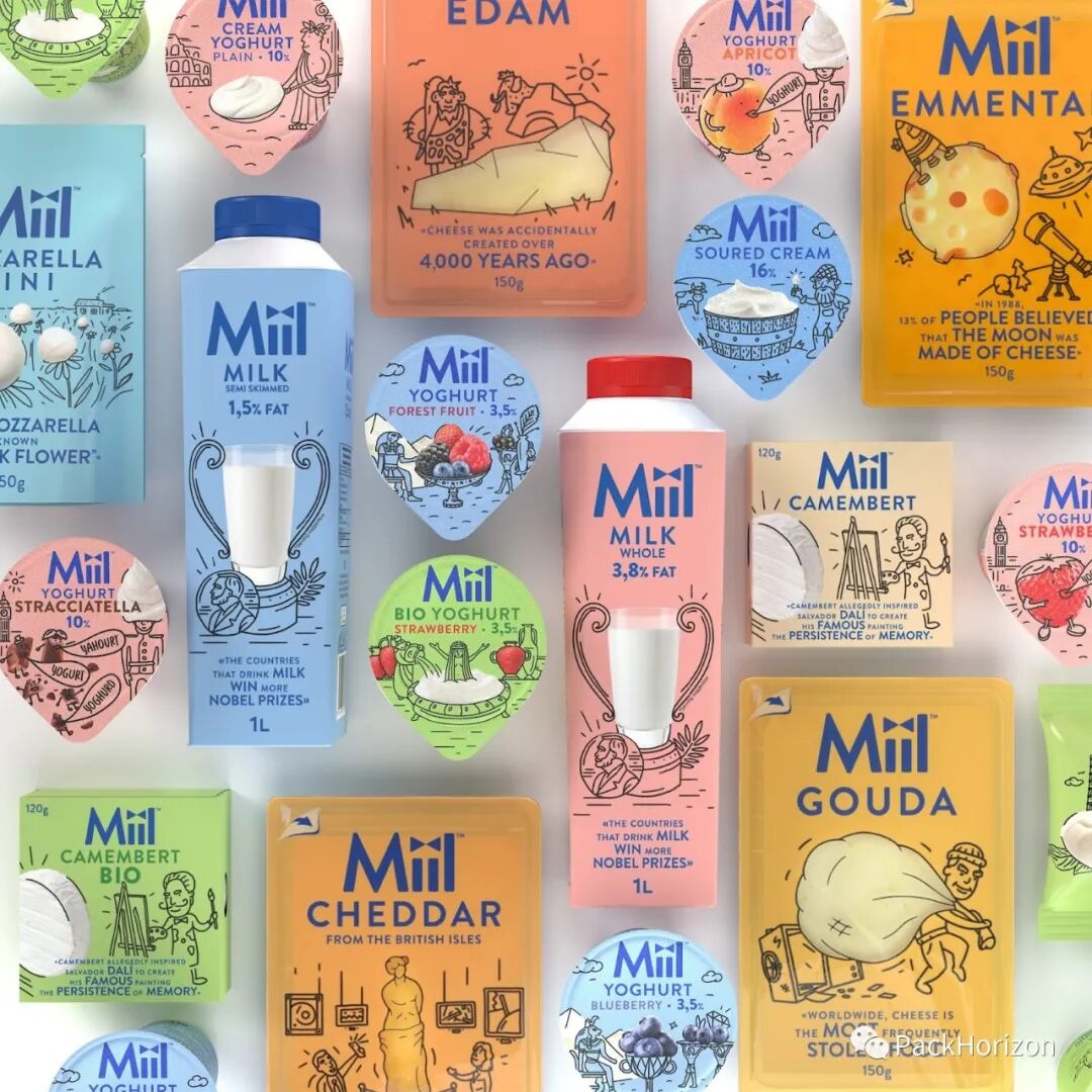 最后但同样重要的是产品照片。这些都是有意的主导,以一种非常直接的方式展示产品的纯粹性。它们被纳入插图,因为有趣的事实只是围绕它们旋转。产品展示(例如在奶酪上使用透明窗口)是一项非常重要的任务。对消费者保持透明和诚实是品牌和 Rohlík 的价值所在。以及让消费者在日常生活和乳制品生活中享受他们所能做的一切。