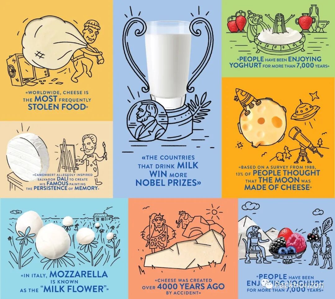 有趣的事实不仅阅读起来很有趣,而且它们以有趣的排版方式排列,使得它也成为一个重要的设计工具。每个有趣的事实都由一个简单的黑色涂鸦草图来说明,最初是为这个场合绘制的。它增加了娱乐性和整体设计的独特性。简单的黑色线条风格与扁平的基色形成鲜明对比,但又不影响每个包装的整体印象。它让我们想起了简单的教科书,在这些教科书中,我们不仅可以通过文字来学习,还可以通过图像来学习。