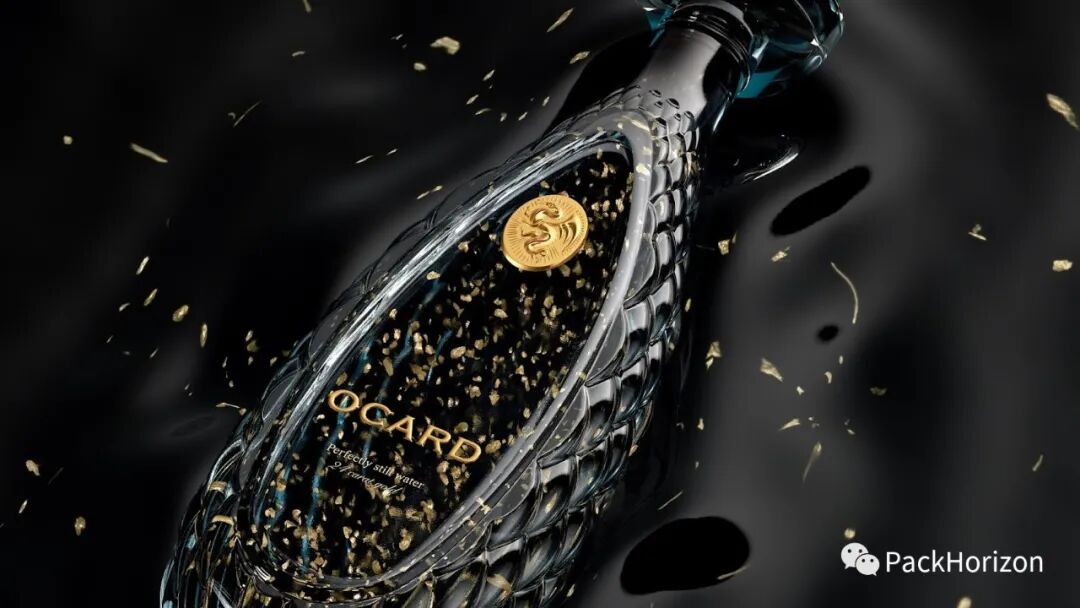 在乌兹别克斯坦,有一个关于由金龙守护的地下泉水的传说。它的水含有金片,喝了它的人可以获得永恒的青春。我们把这个传说作为优质黄金水的一个品牌故事。我们把这个品牌命名为Ocard,这是一个反转的德拉科。我们创造了一个独特的玻璃瓶,上面覆盖着 "龙的鳞片"。上面几乎什么都没有:只有 "O "中的龙眼标志和带有龙的奖章。