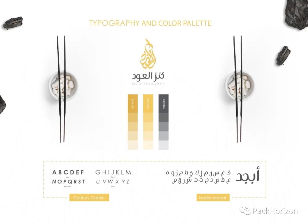 客户找到我,让我为他的品牌设计一个完整的品牌形象。在与客户进行了几次头脑风暴之后,我选择了 "Oud Treasure "这个名字;这个名字引起了他的共鸣,因为它赋予了这个品牌一种优质的价值。当需要将品牌形象图标化时,我选择了沉香数果实的形状,并将其间接地表达出来。标志的字体是经典的阿拉伯书法,因为它与客户的眼睛相连,是阿拉伯艺术中美的巅峰和创造力的顶点。色调被选为金色,以反映大沙漠以及品牌的奢华。