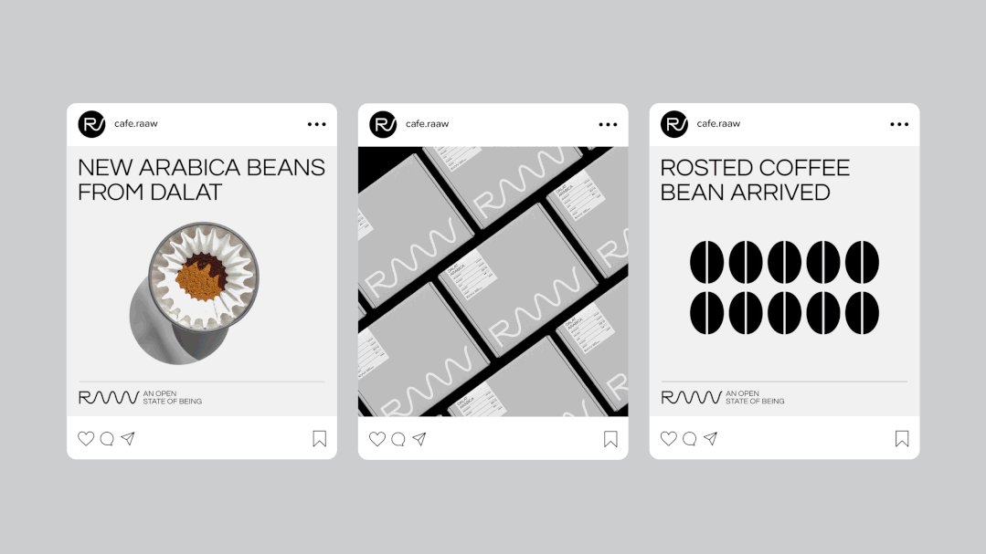 我们为 Café RAAW 创建了一个建立在其现有基础上的新身份。就像在写一本书的下一章一样,我们将 RAAW 定位为其原始自我的新扩展版本。品牌现在踏上新征程,拥抱新面貌,汇聚新人。简而言之,我们保留了原始角色并添加了情节转折,确保 RAAW 的现有客户不会感到疏远,而是对即将到来的变化感到兴奋。