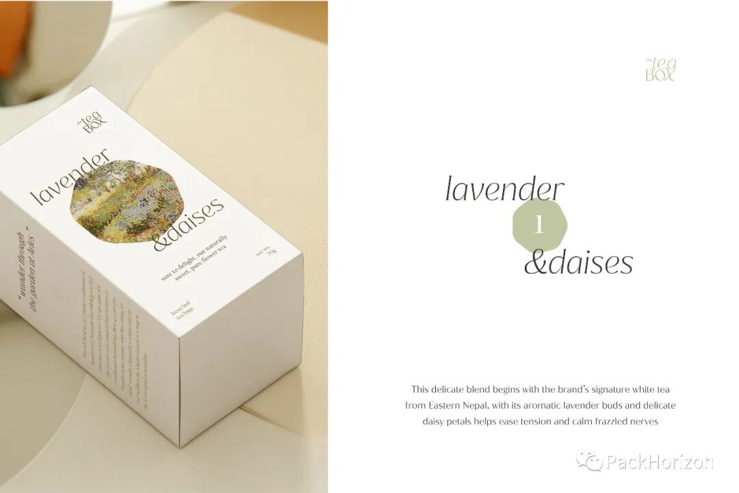 作为一个重视消费者用茶体验而非茶叶本身的品牌,The tea box的品牌和花茶系列背后的概念是围绕着 "走进花圃杰作 "的概念来定义和提炼的。这意味着当消费者在享受他们的茶时,通过香味和味道,他们会觉得自己是在花圃的画中。