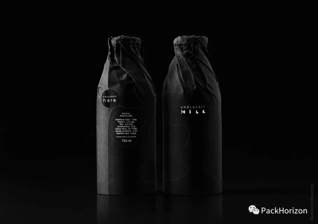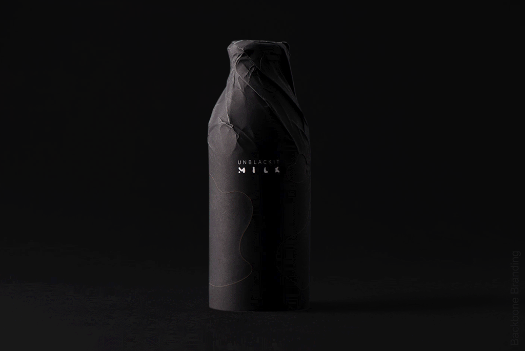 现在,想象一下在商店的全白色牛奶架上看到一个全黑色的瓶子。介绍:“Unblackit”。