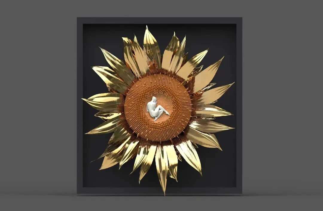 ▲李铭《向日葵》铜电镀烤漆 80X80X20cm / 45X45x10cm 2021年