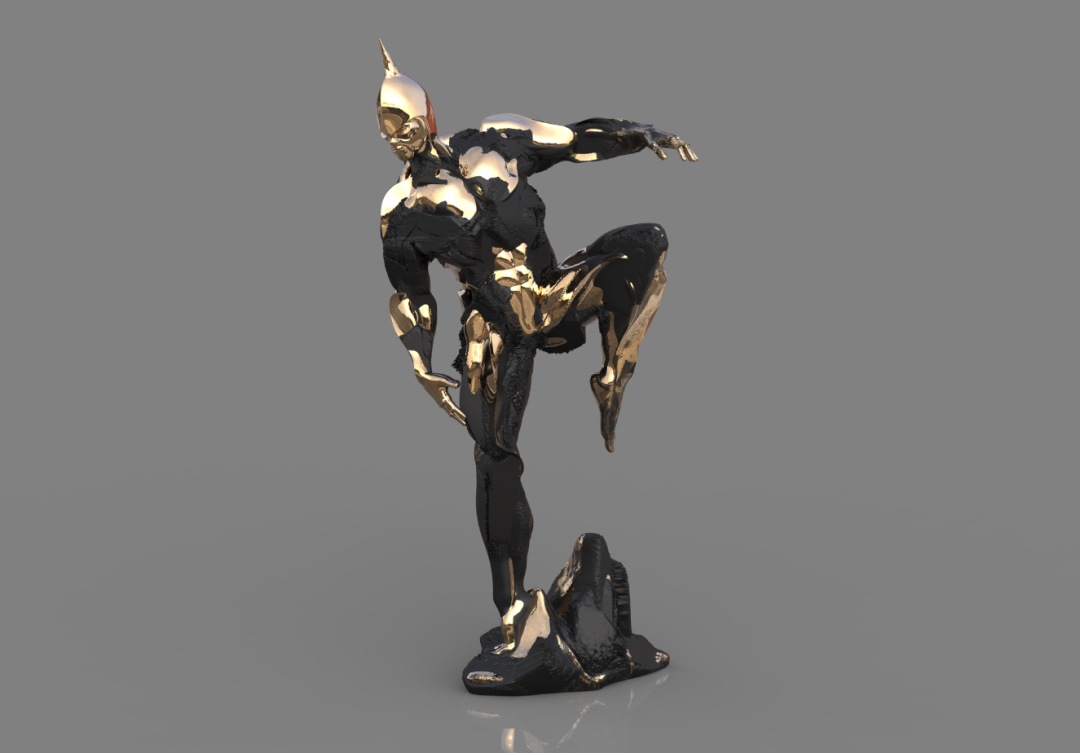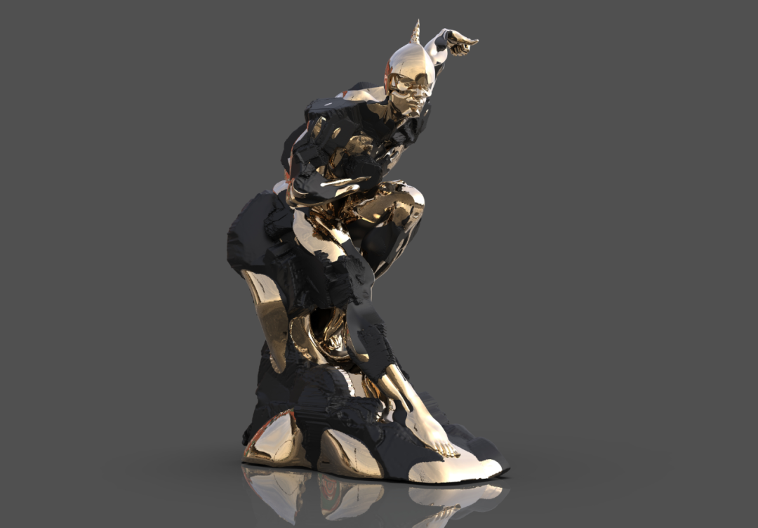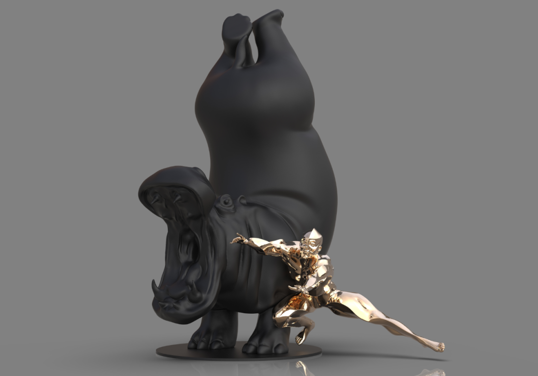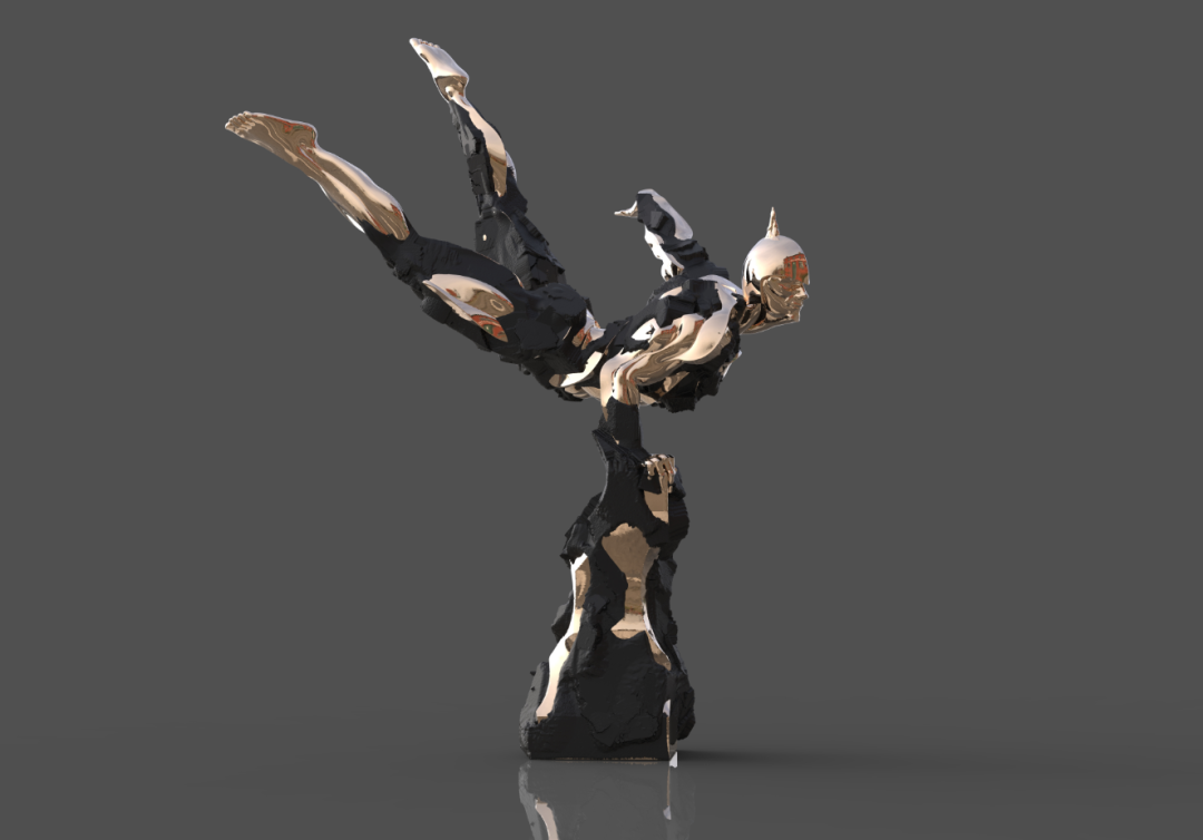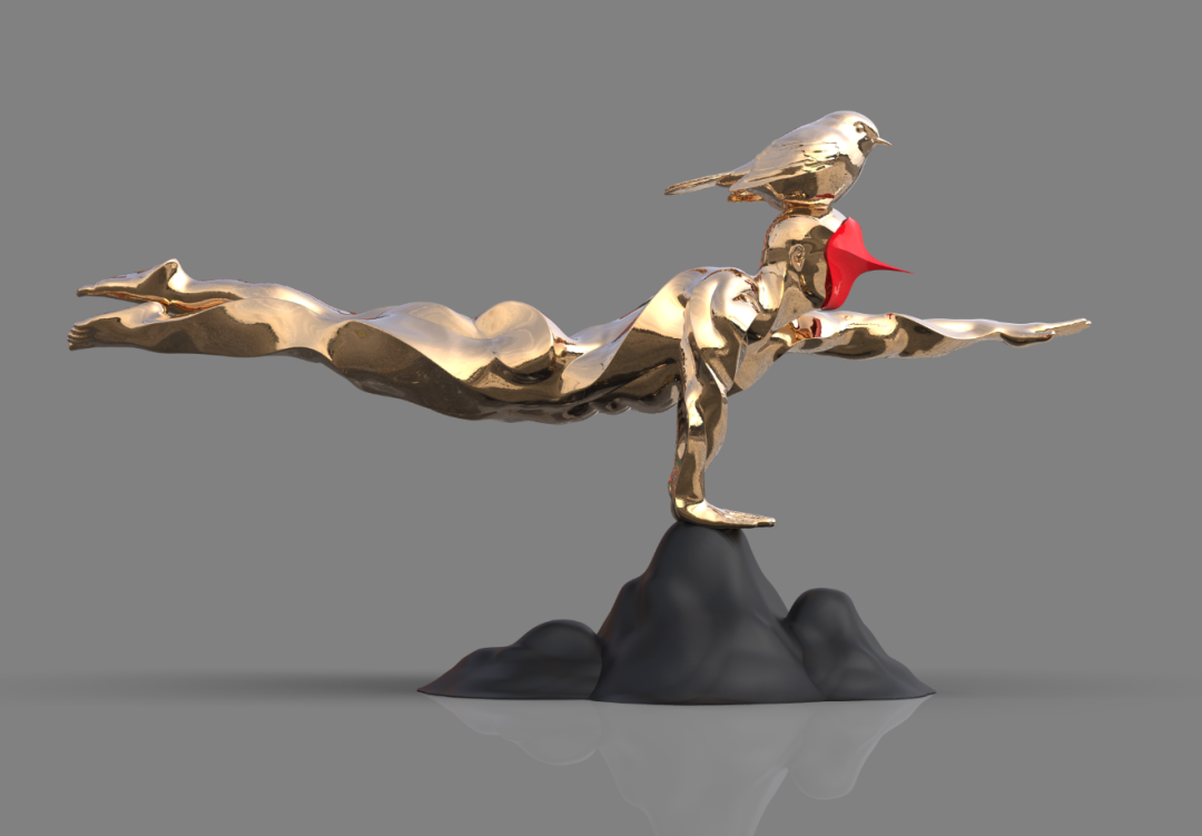 ▲李铭《时空英雄系列-亮》铜电镀烤漆 45X24X23cm 2019年