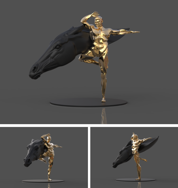 ▲李铭《金戈铁马》铜电镀烤漆 40X45X27cm 2022年