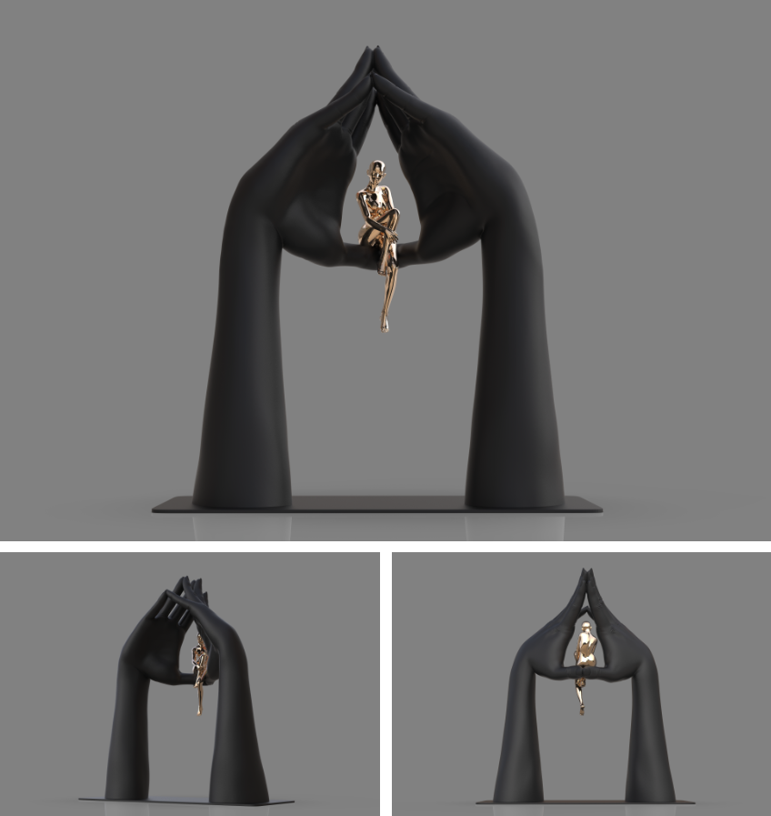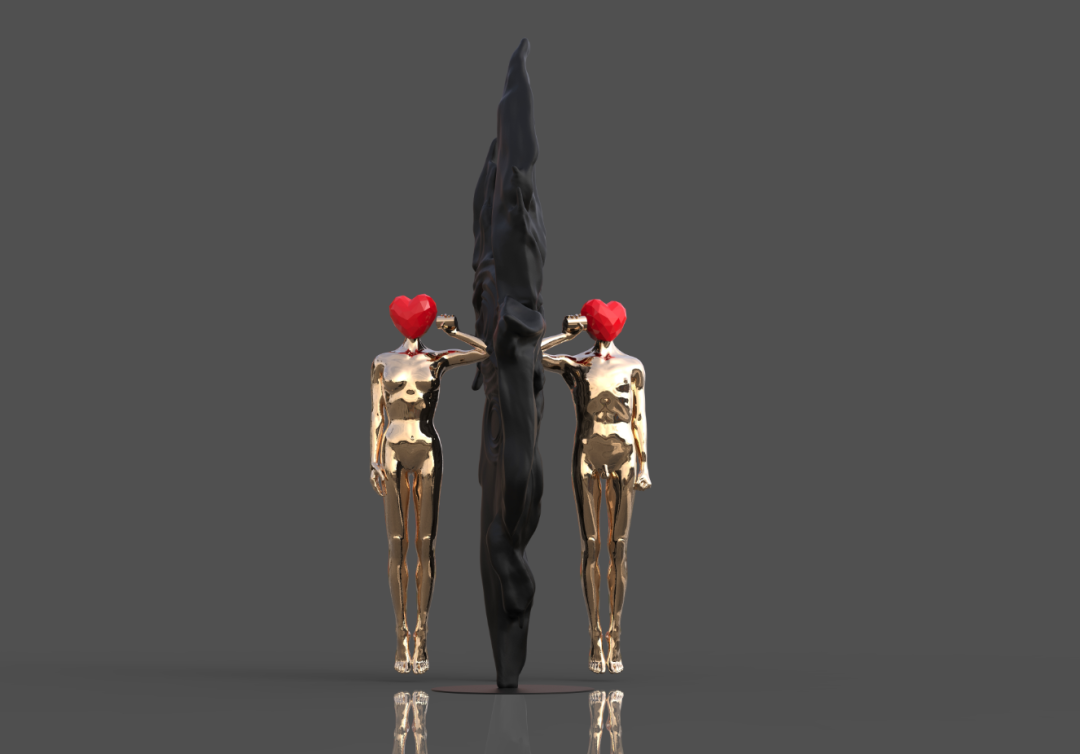 ▲李铭《我们之间》玻璃钢电镀烤漆、作色 50X28X20cm 2019年