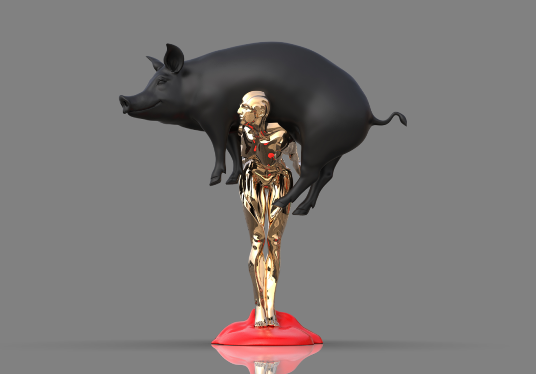 ▲李铭《霸王别姬》铜电镀烤漆 70X68X18cm 2020年