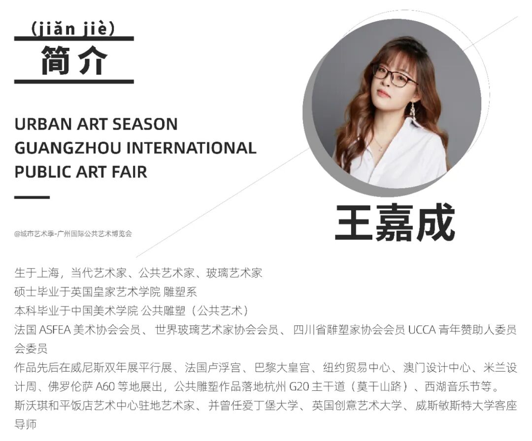 王嘉成在公共艺术创作中亦有自己的理念和追求。她亦在思考人与城市的关系,展现人类日常生活中的氤氲,在作品的审美性、互动性、功能性等方面实现平衡,让观众从作品的观赏者转变为参与者, 从而提升多重效益。