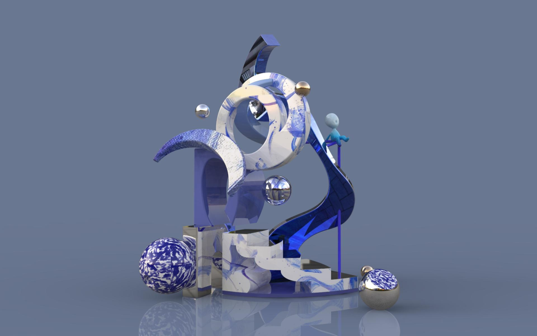 作者将涟漪的曲线与形状解构重组,并 运用4k镜面不锈钢、不锈钢烤漆及车漆 彩绘的工艺,构建城市生活中个体在群 体中的碎片化情景。整个作品具有一定的互动性与功能 性,其镜面反射可与周边建筑场 景产生关联,其弯曲向上的阶梯, 可供观者攀爬、摄影,使观者与 该作品产生互动性,从而提升社 会效益。