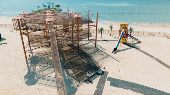 绳网部落的作品只要一展现,都会引起人们的兴趣。彩虹转椅、树上蹦床、彩虹小镇、集装箱水滴蹦床、吊球秋千、彩虹阶梯、蜂巢网、绚丽沙滩、迷宫悠悠岛……这些五花八门的名字听着就让孩子们神往。这些游乐设施中的钢结构都有绳网和弹性包裹,保证了孩子的安全,不会在玩耍过程中跌落磕碰,让孩子们在玩耍中尽情地享受、放松。