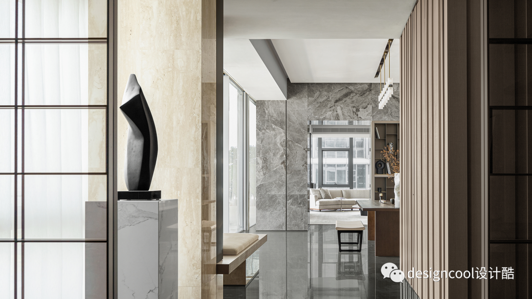 摒弃刻意的矫揉造作和⼤⾯积的浮夸装饰, 只保留最纯粹的表达, 彰显主⼈对⽣活品质的极端追求。
