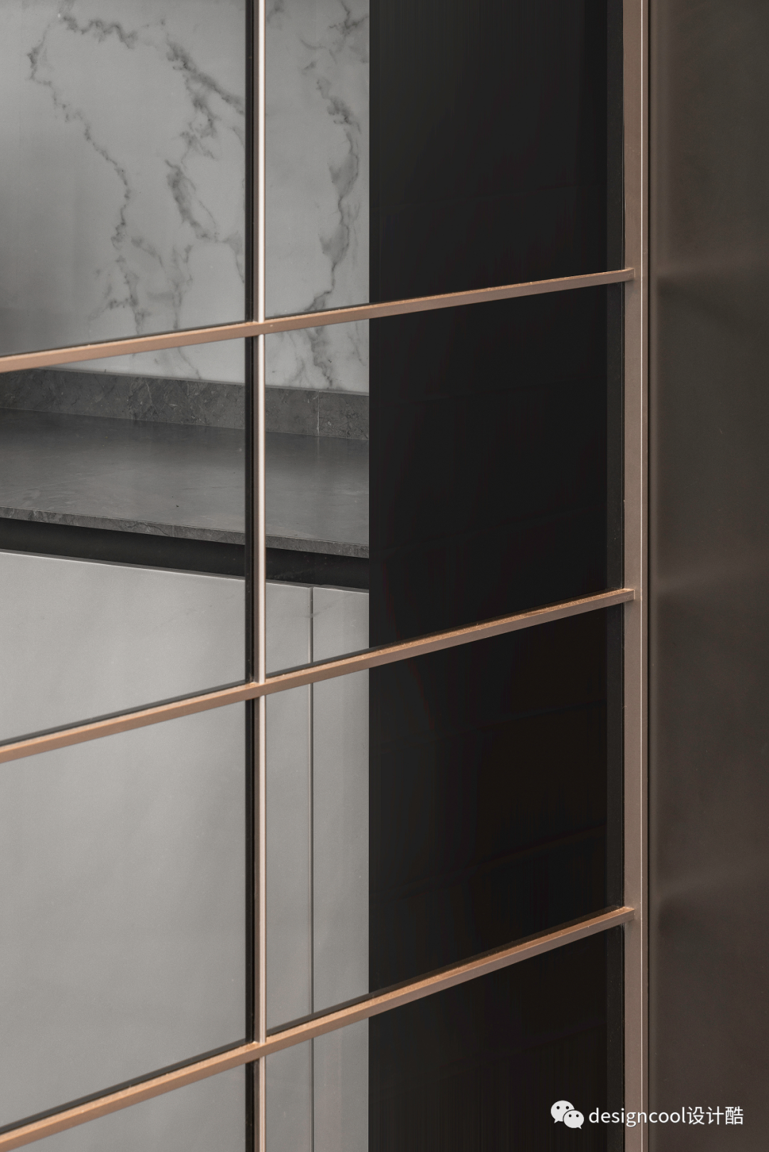 Compared with the openness of the living room, the private banquet space seems to create a moderate and soft sense of wrapping. It is made of tough black stone, brown leather, mirror, metal and other materials and texture to modify the almost similar high-grade character.